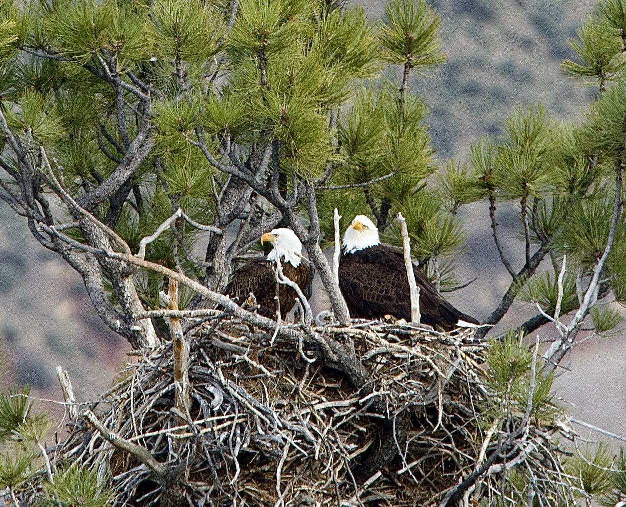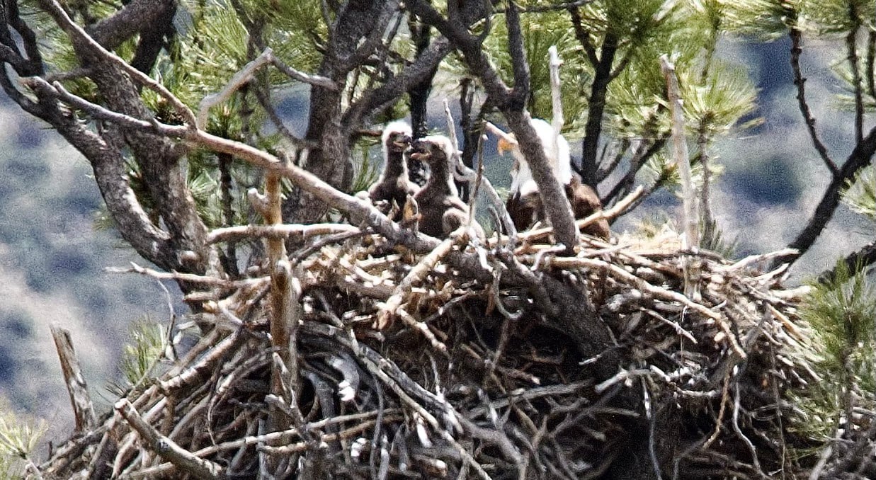 For the last ten+ years, the nesting pair of eagles at the base of Bellyache Ridge Road have produced 2-3 eaglets each year. They are now in danger due to potential development in that area.